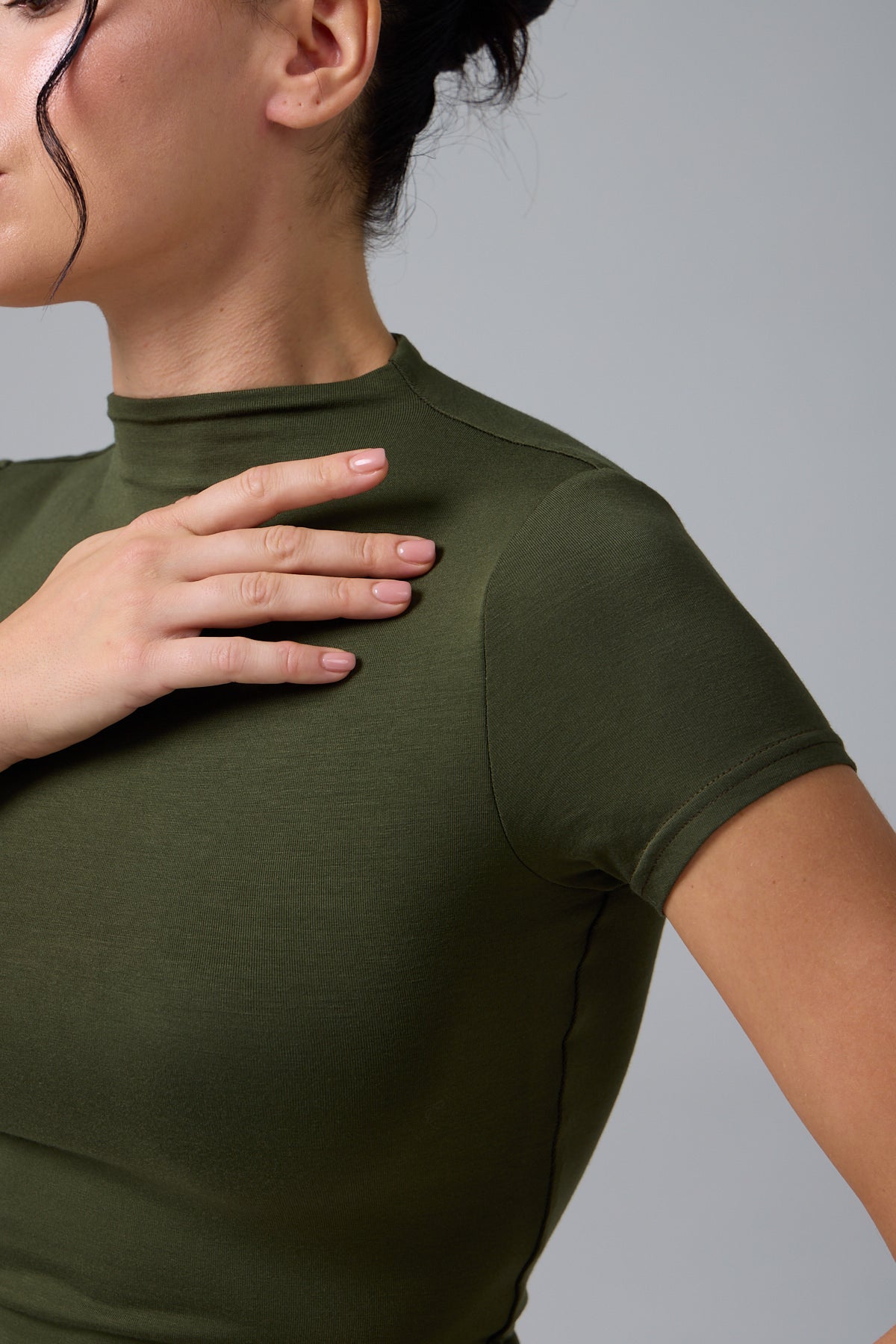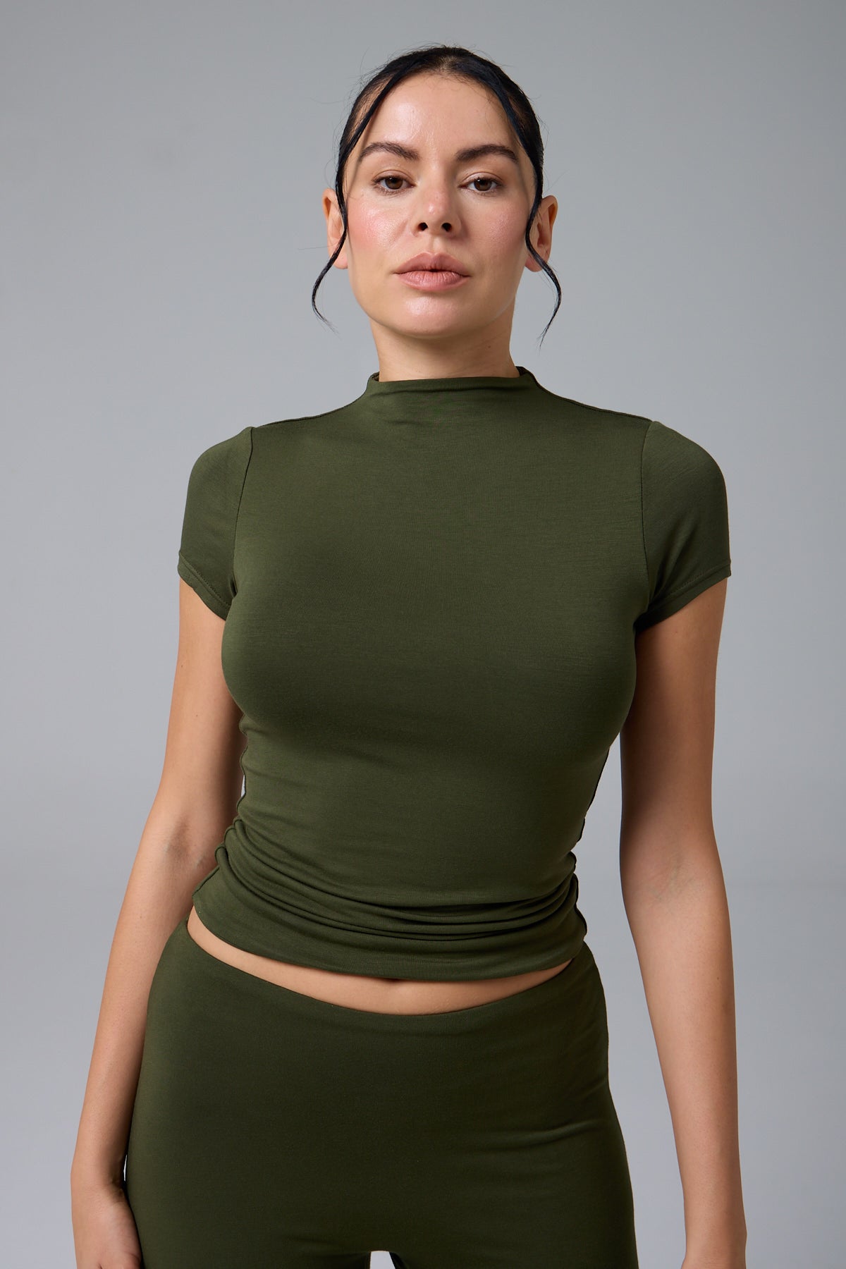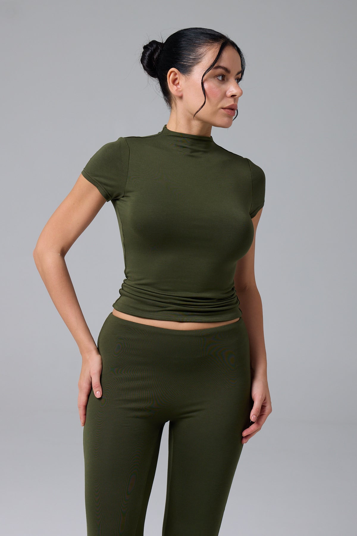 MUAZE - YARIM BOĞAZ YAKA - AY KOL T-SHIRT - GREEN OLIVE