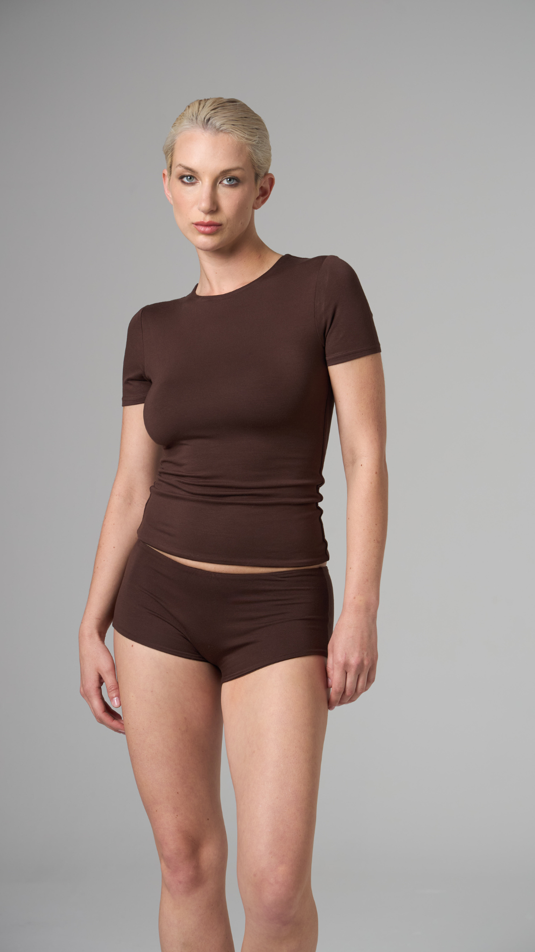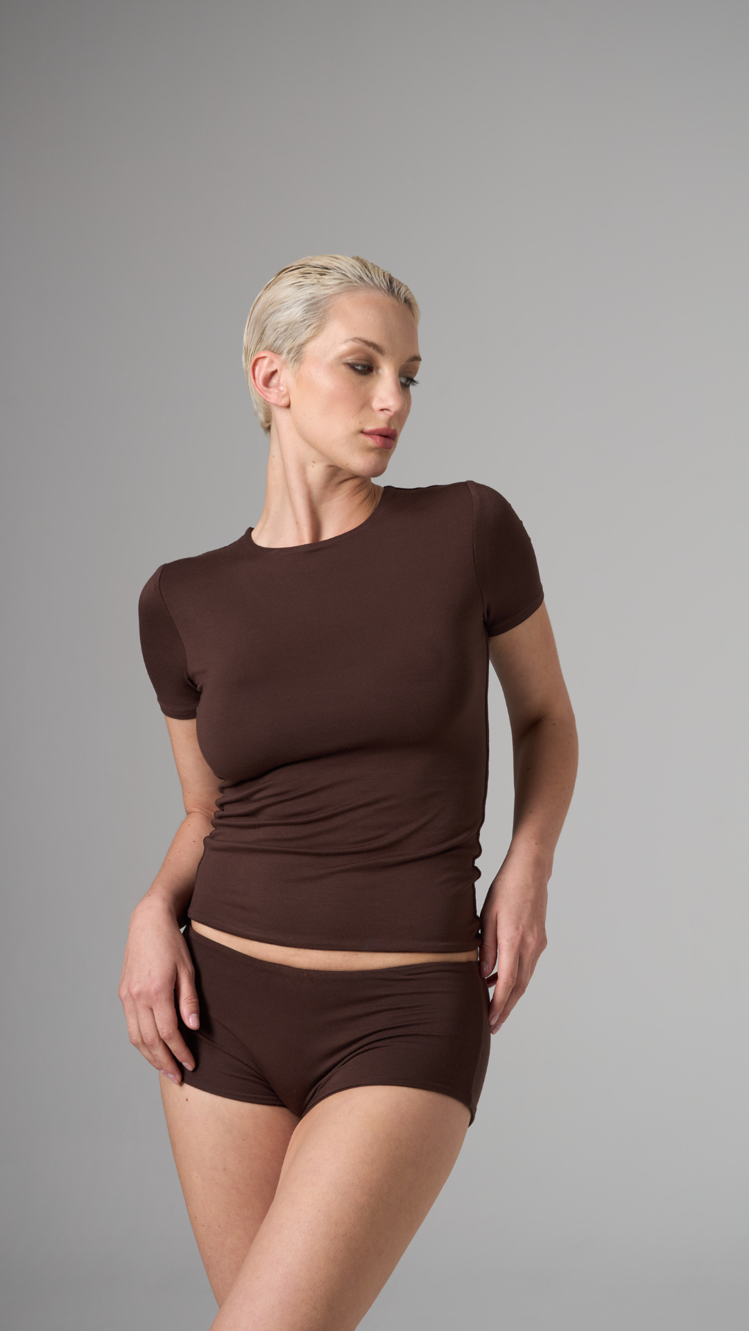 Kısa Kollu Tam Boy Tişört, yüksek yakalı, çift katmanlı ve tam boy tasarımıyla gardırobunuzun vazgeçilmez parçası haline geliyor. Yuvarlak yakası, dikişsiz yapısıyla zarif bir görünüm sunar ve giyildiğinde kişiye özel bir his verir. Yüksek esneklik sunarak rahat hareket imkanı sağlar ve her durumda şık bir görünüm oluşturur. Hafif yapısı sayesinde terletme yapmaz, her mevsimde rahatlıkla giyilebilir.