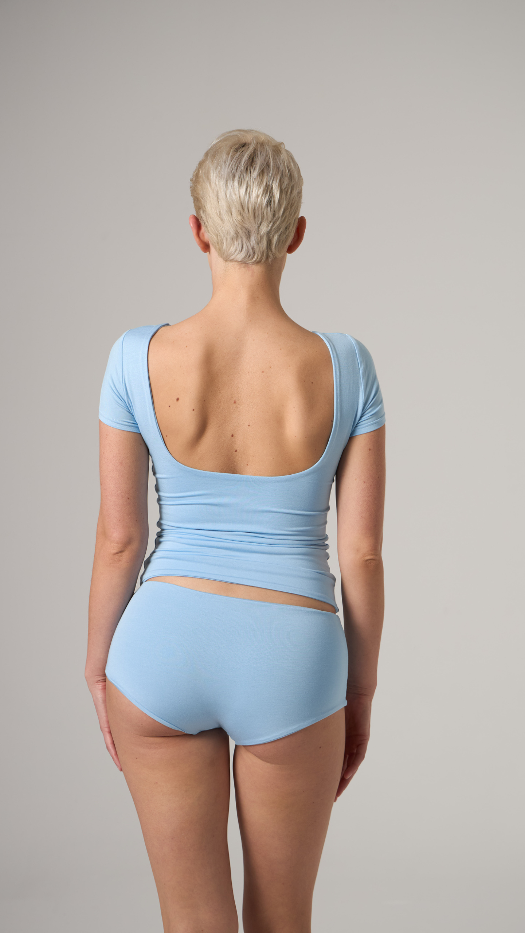 HOLE - SIRT DETAY KAP KOL T-SHIRT - SWEETBLUE