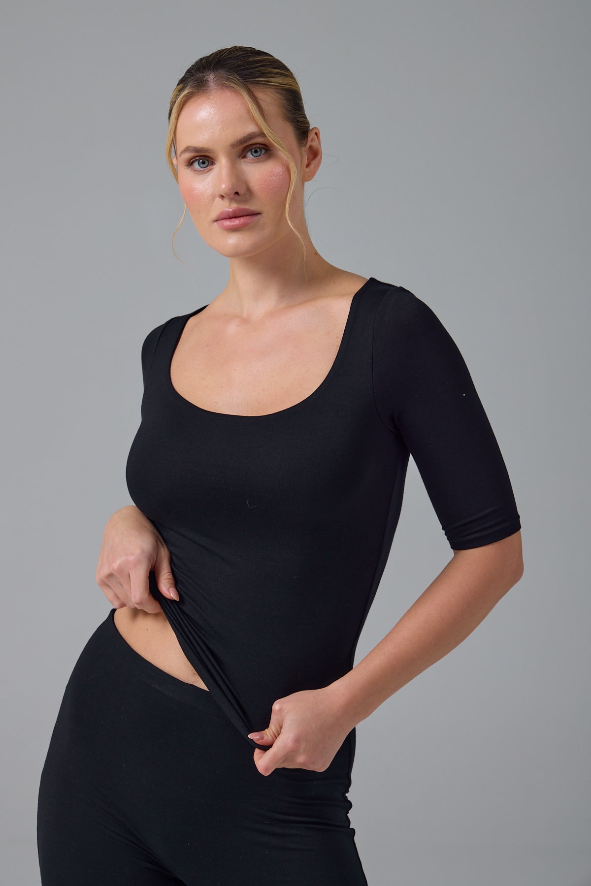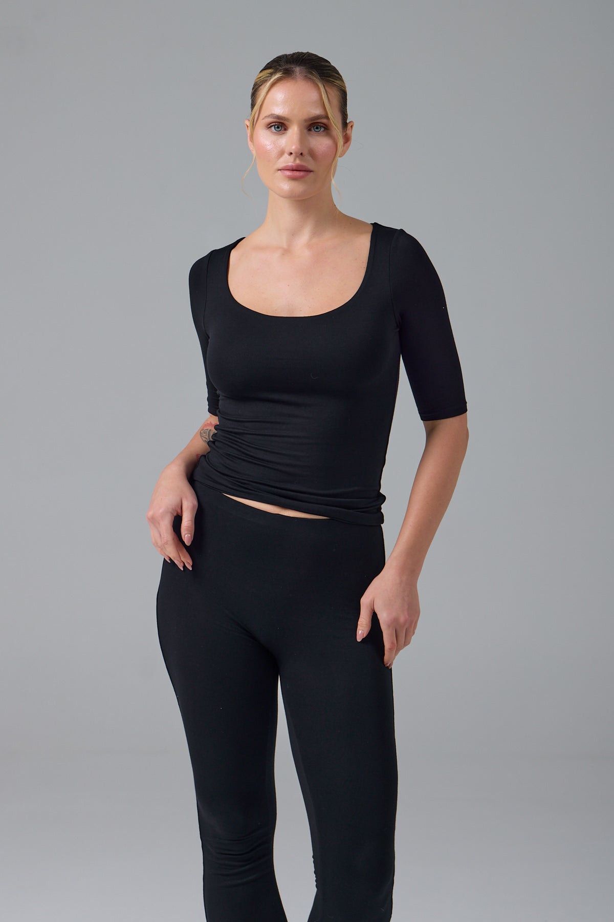 HELEN - KARE YAKA KAP KOL T-SHIRT - SİYAH