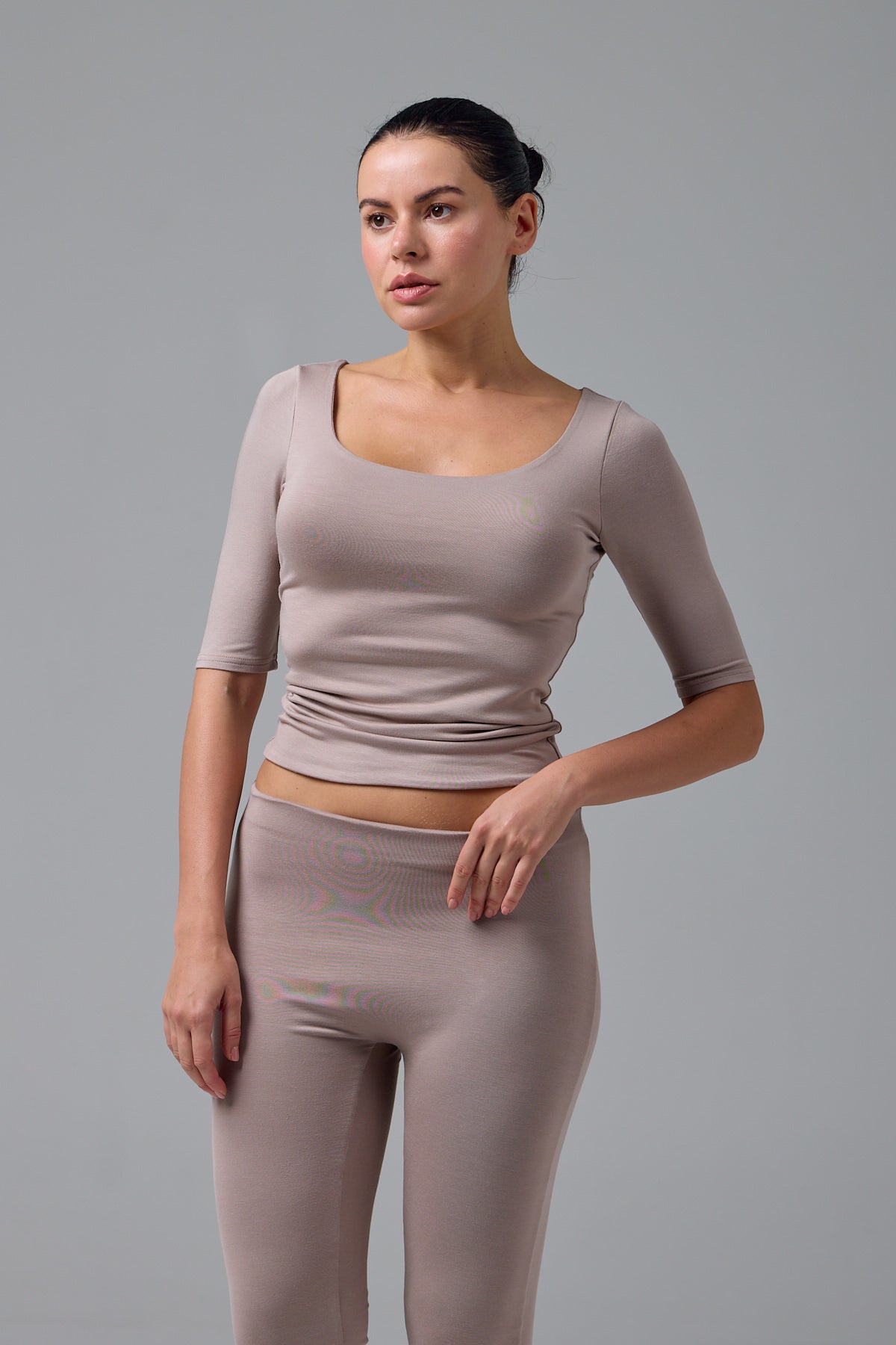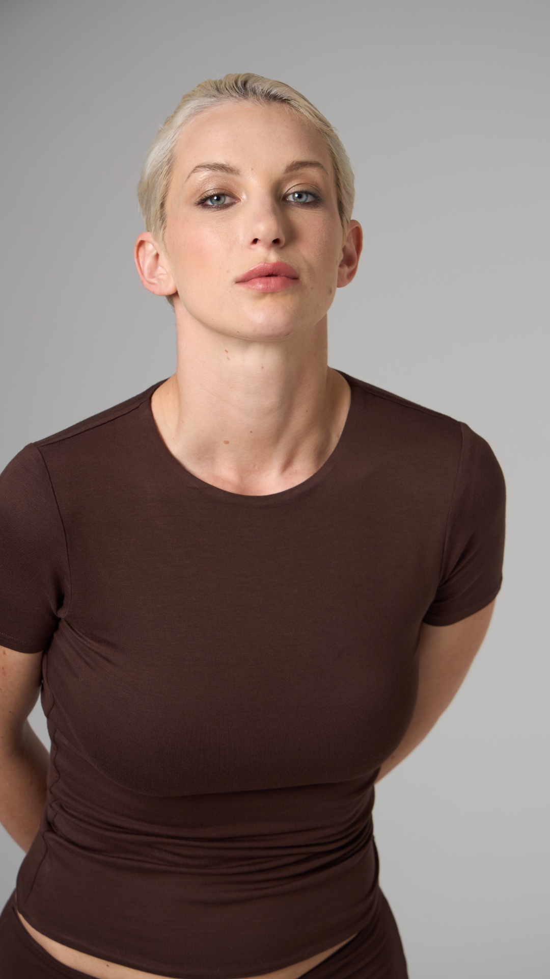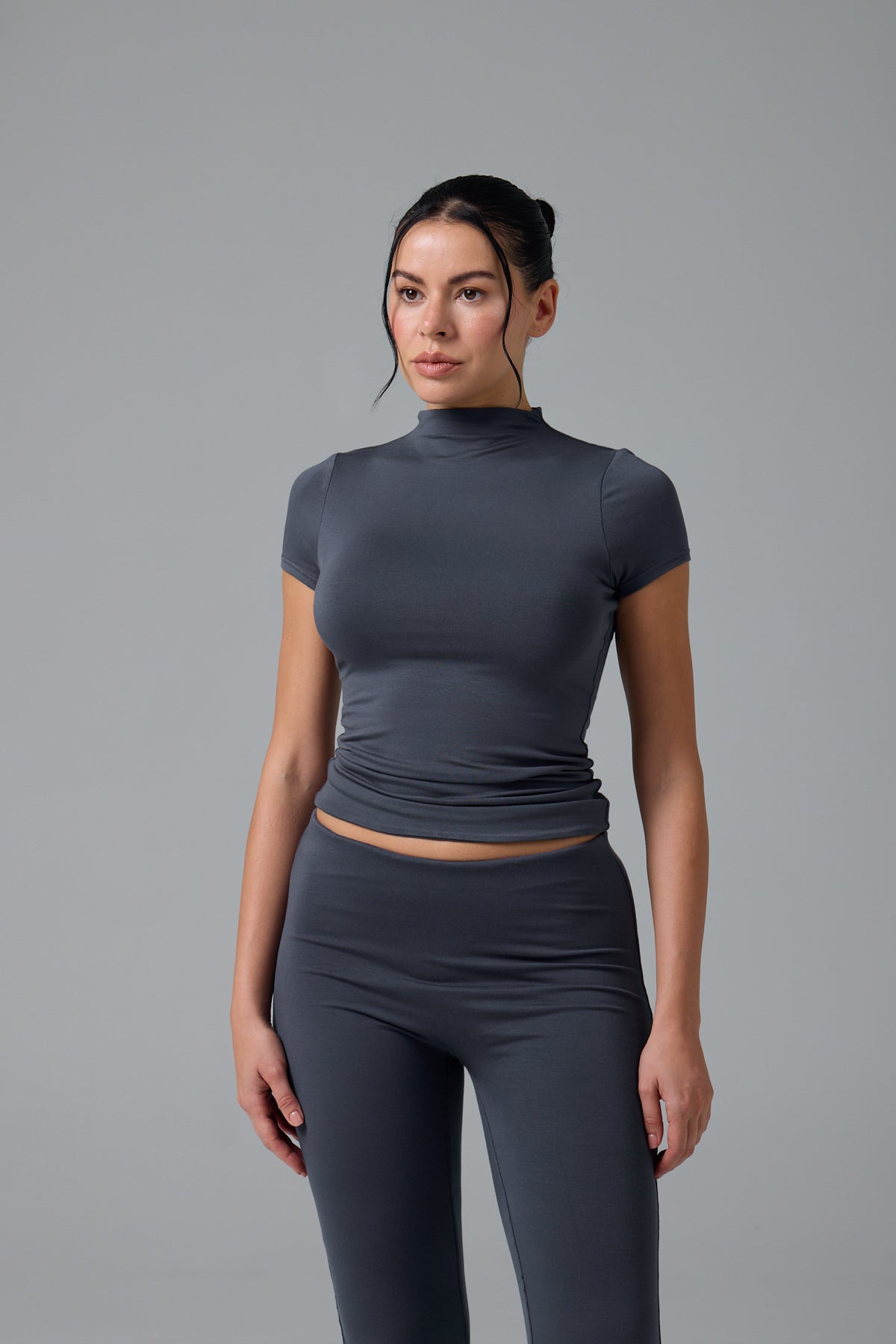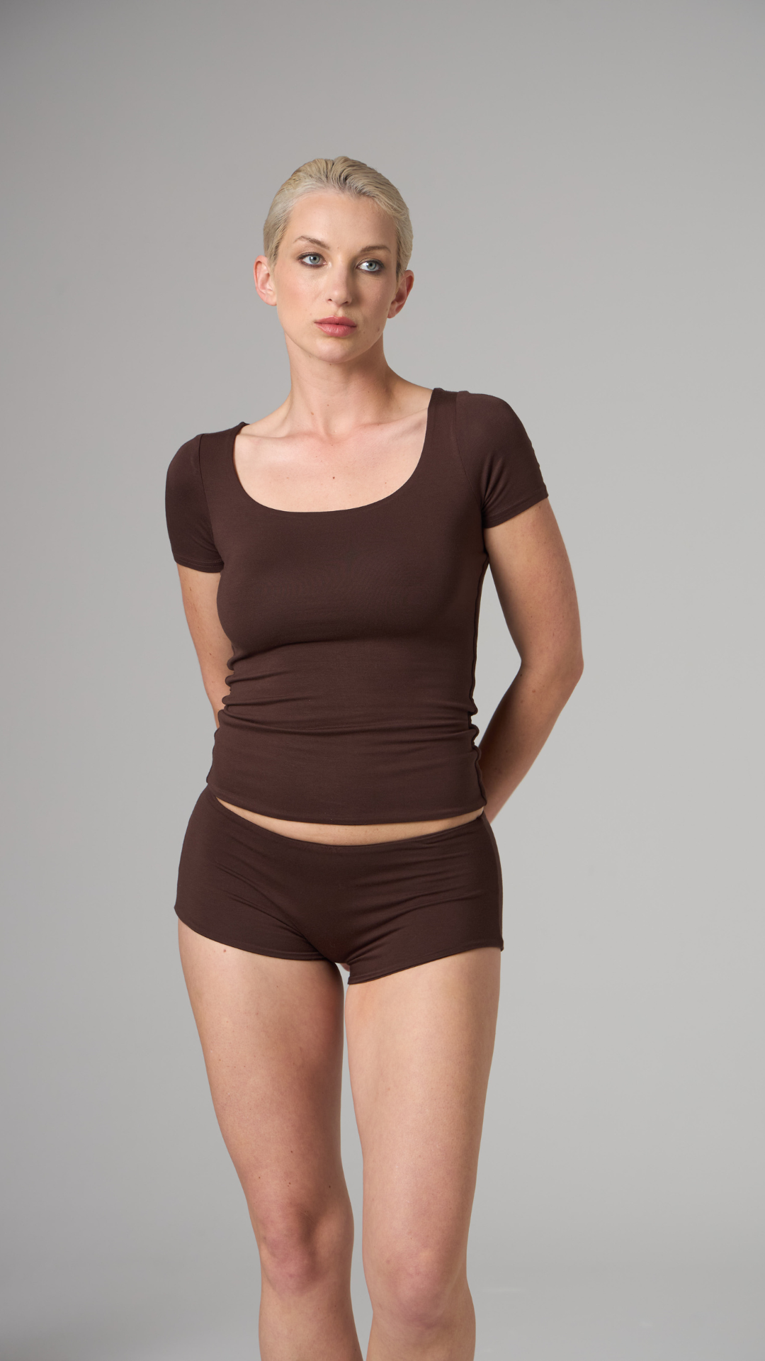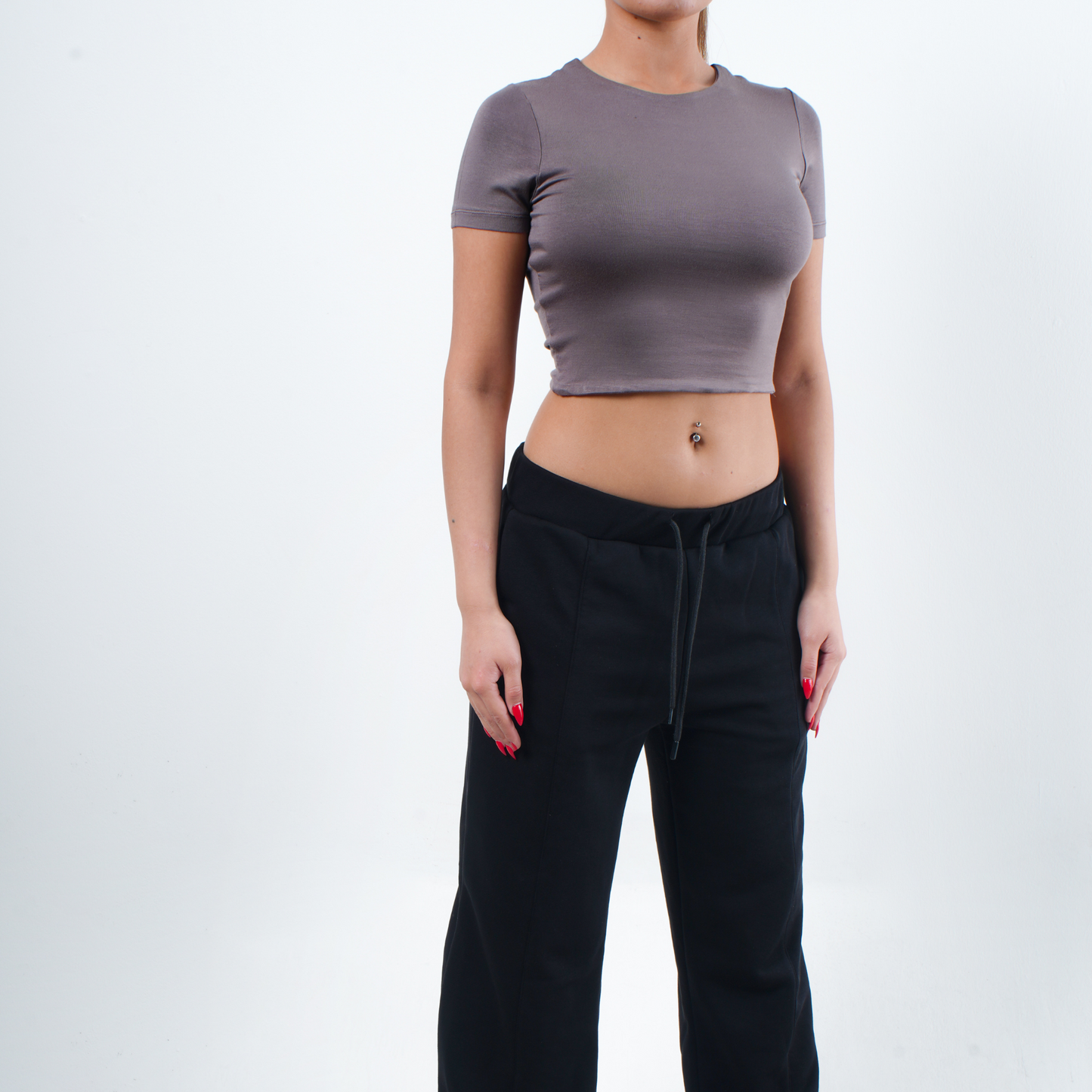 GNC - KISA KOLLU-U YAKA CROP T-SHİRT- ESPRESSO