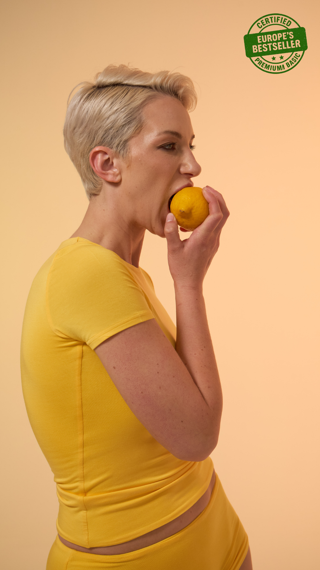 OZY - YUVARLAK YAKA KAP KOL CROP T-SHIRT - LEMON