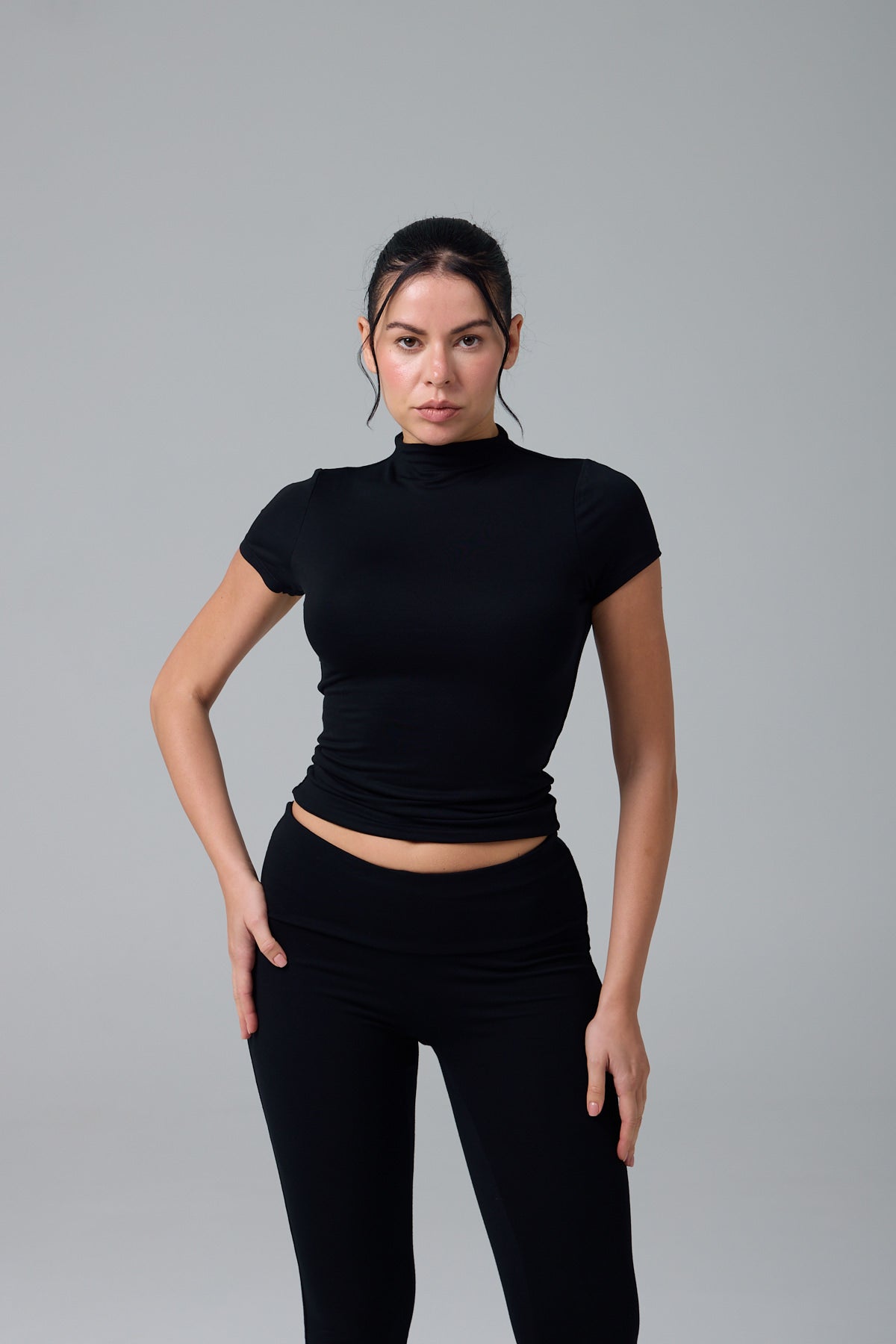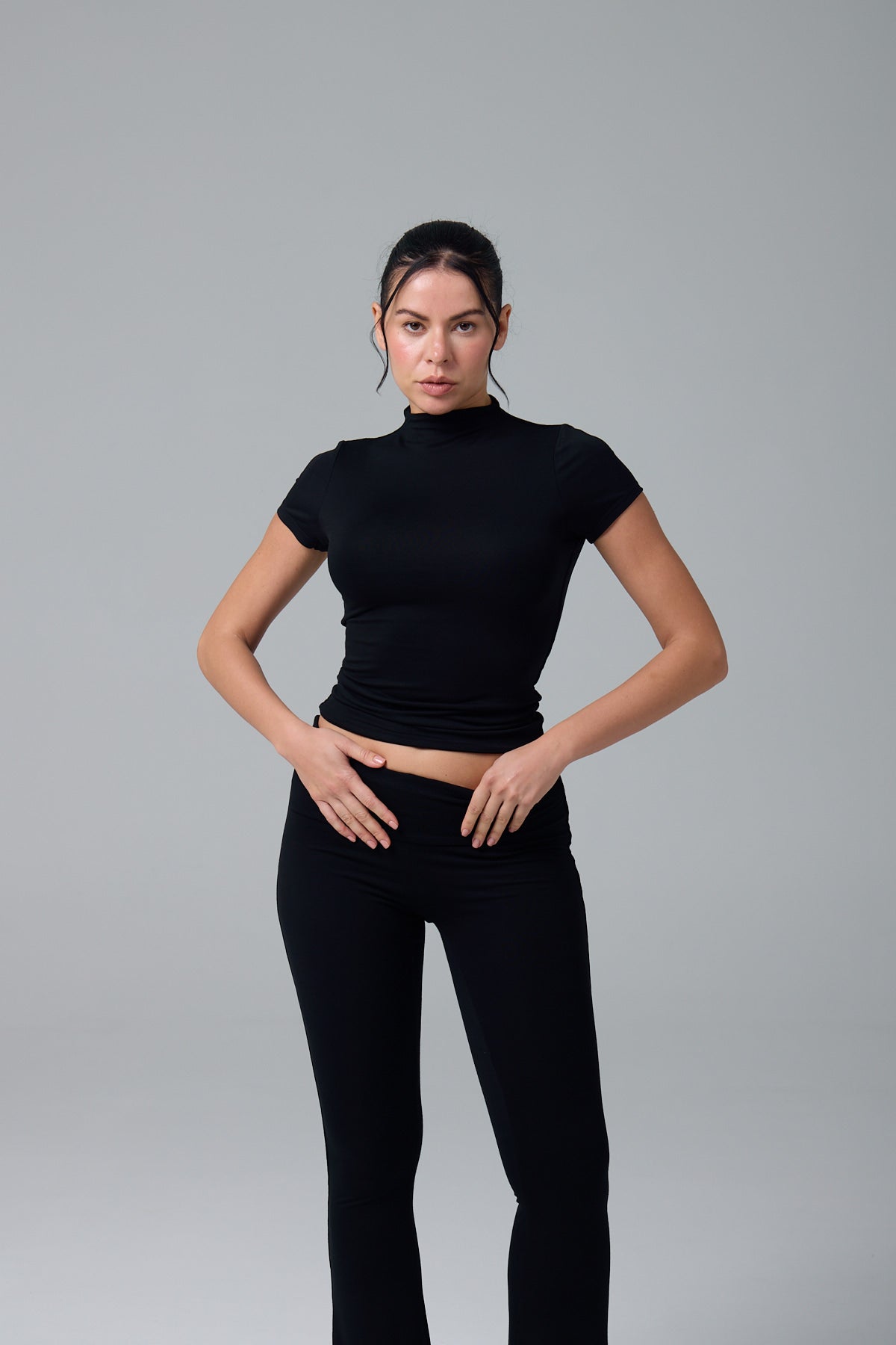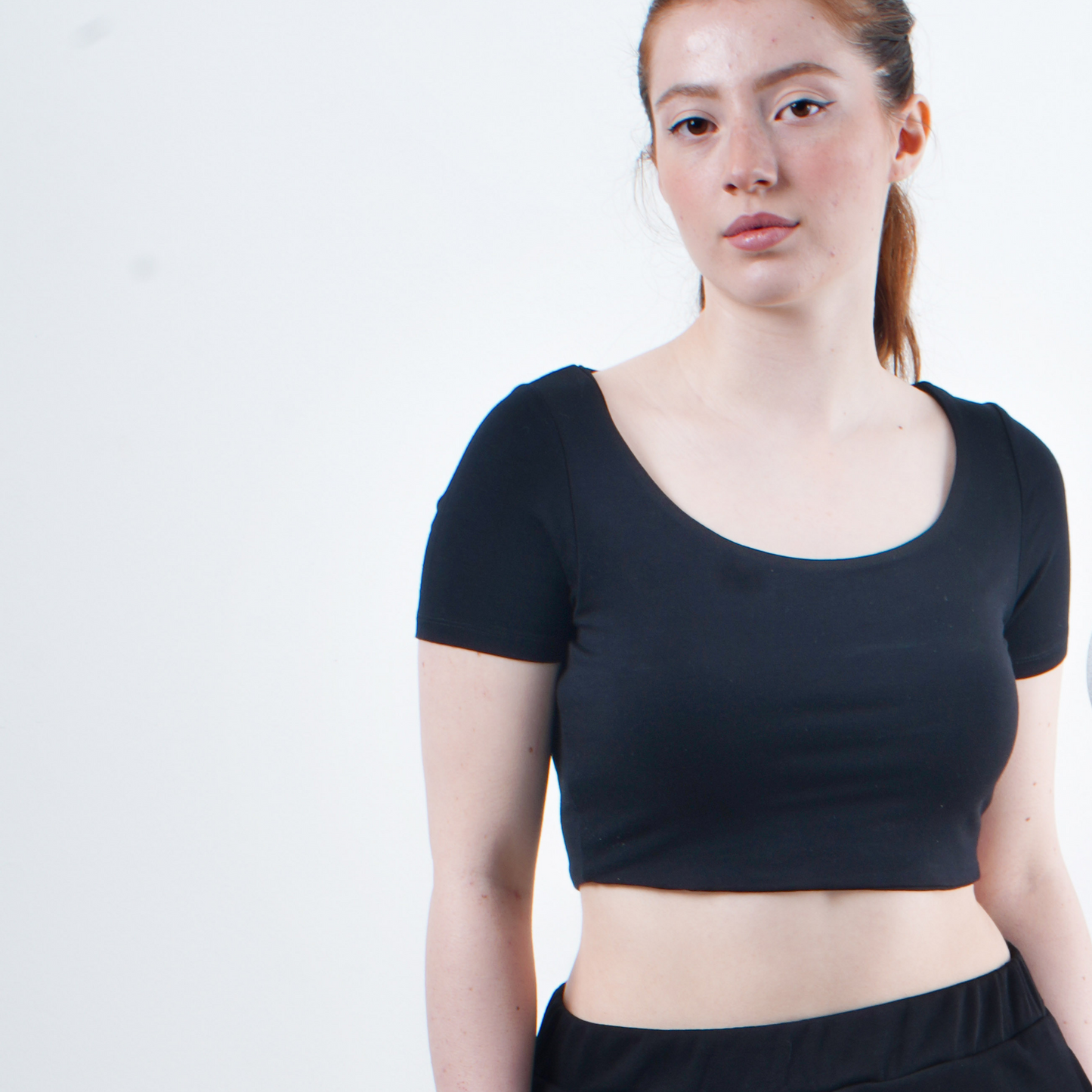 GNC - KISA KOLLU-U YAKA CROP T-SHİRT- SİYAH