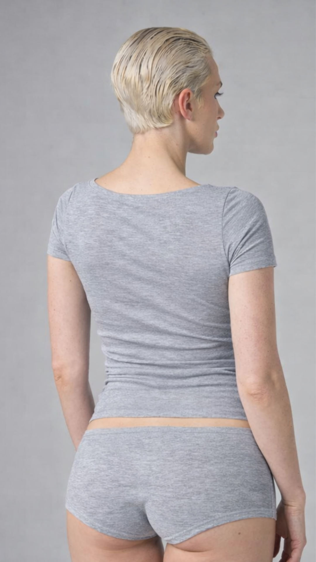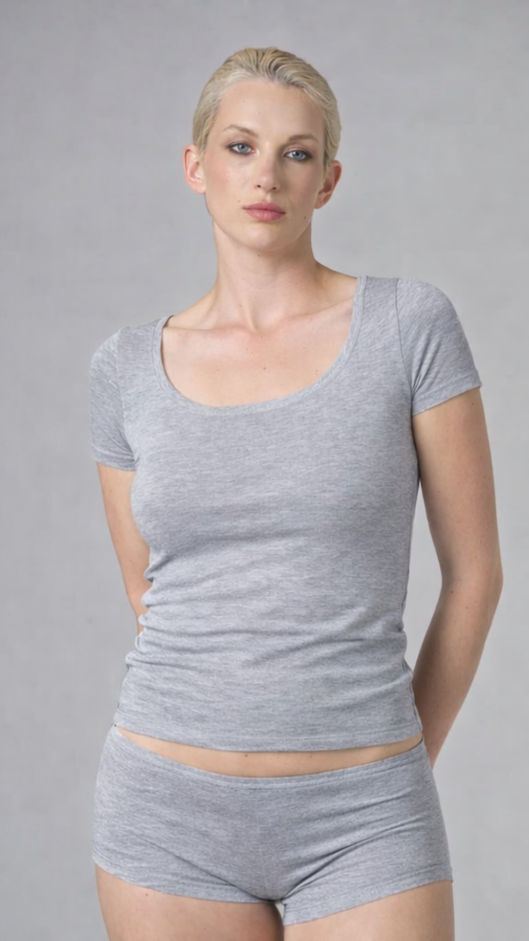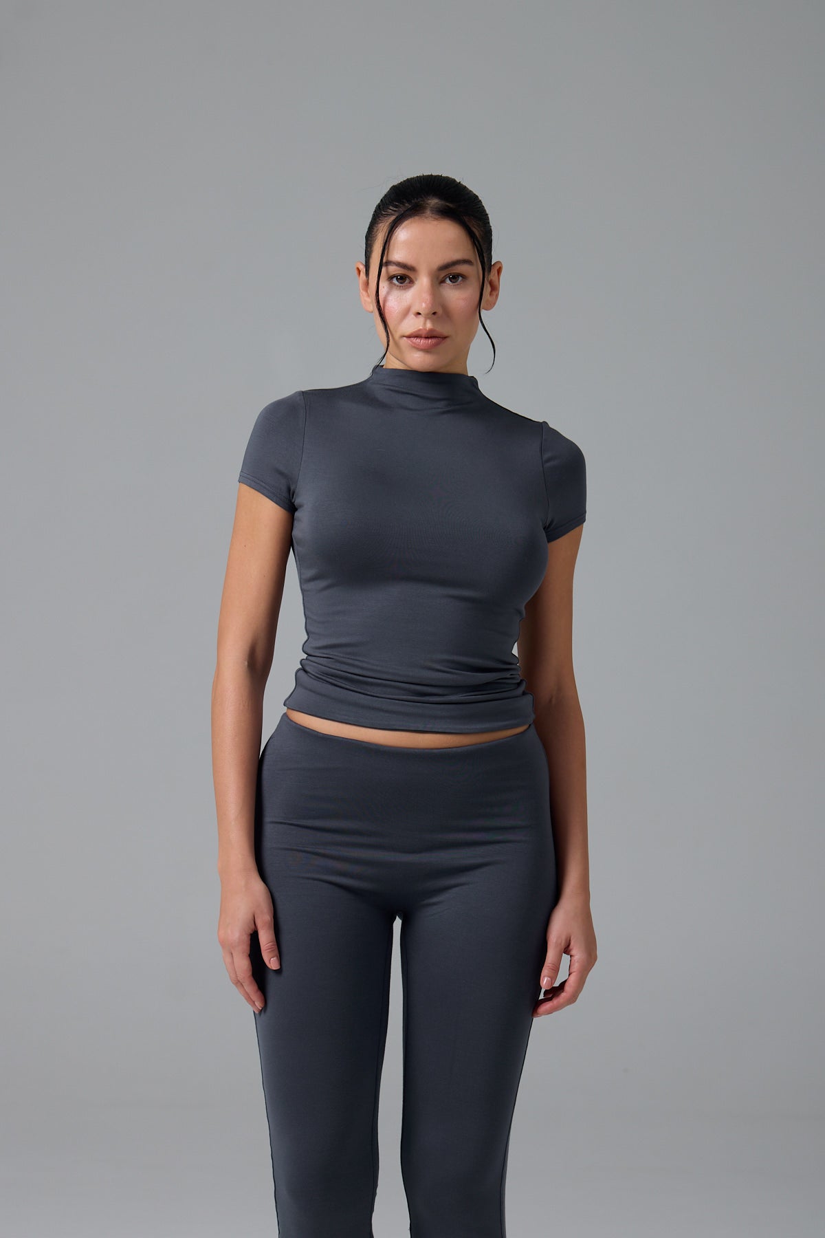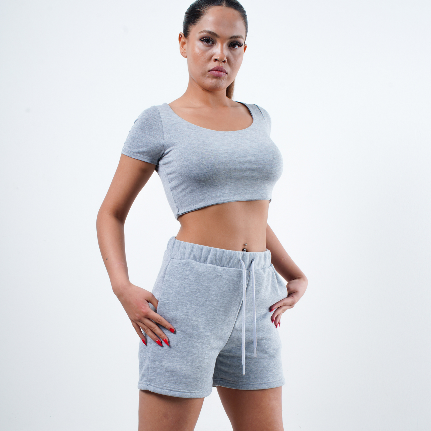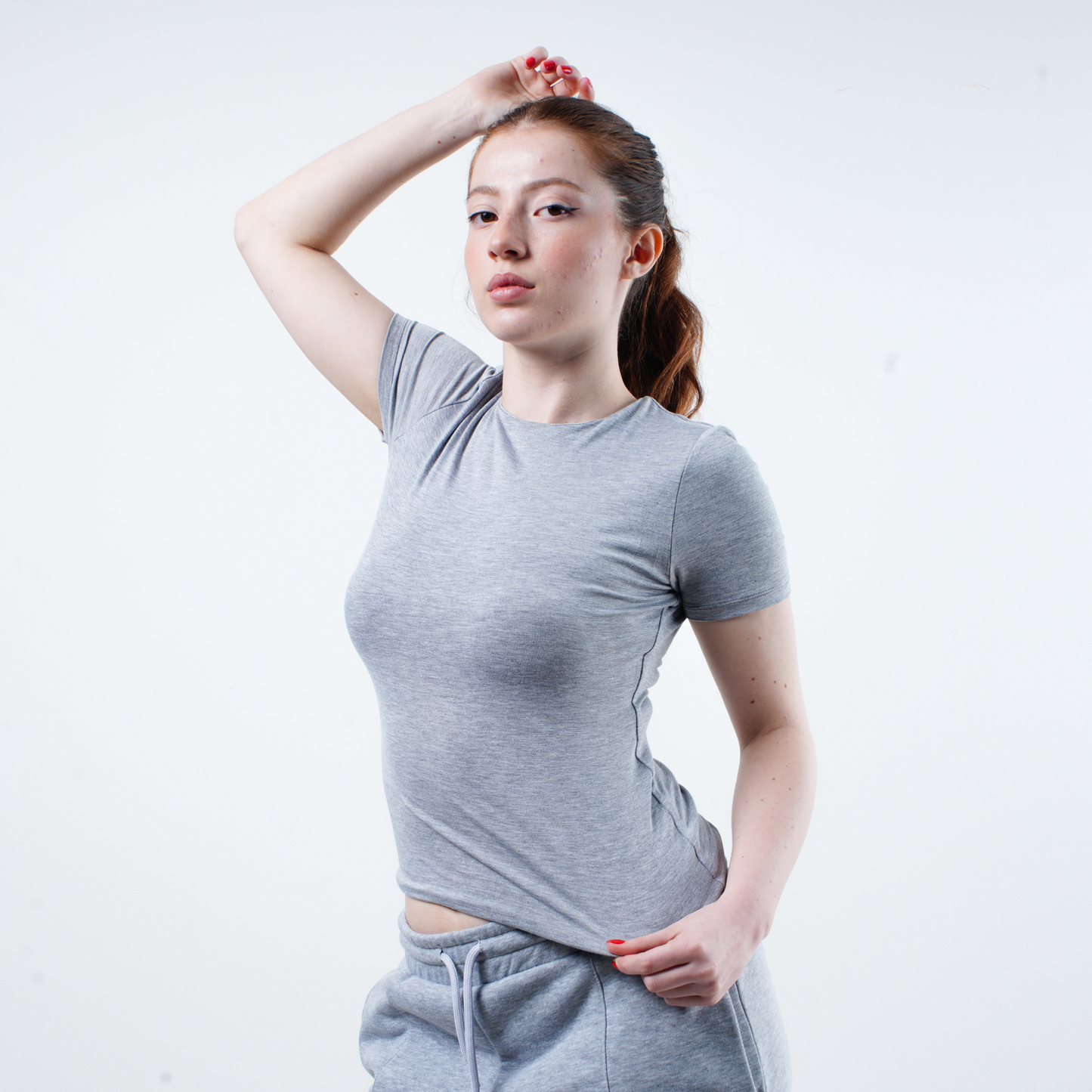 GNC - KISA KOLLU-U YAKA CROP T-SHİRT- GRİ MELANJ