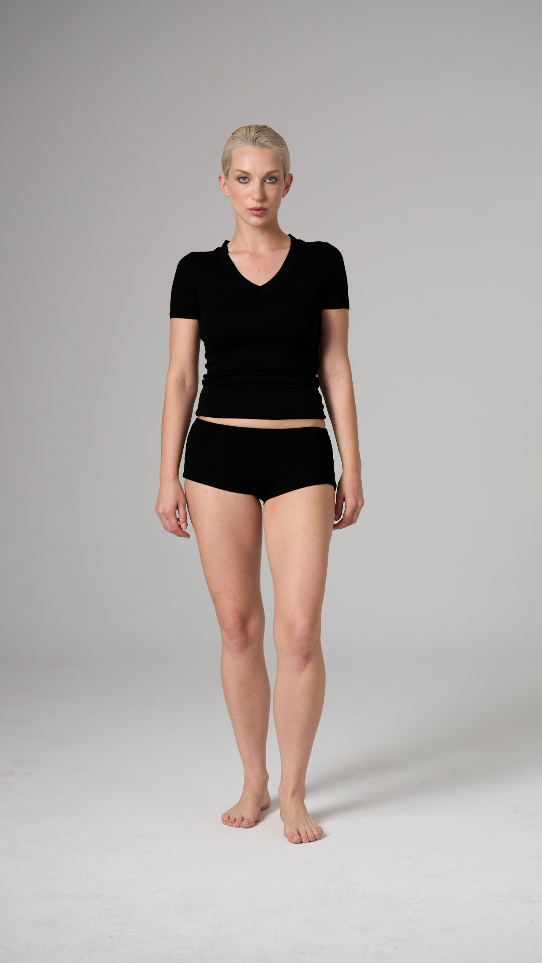 V-YAKA KISA KOL T-SHIRT - SİYAH