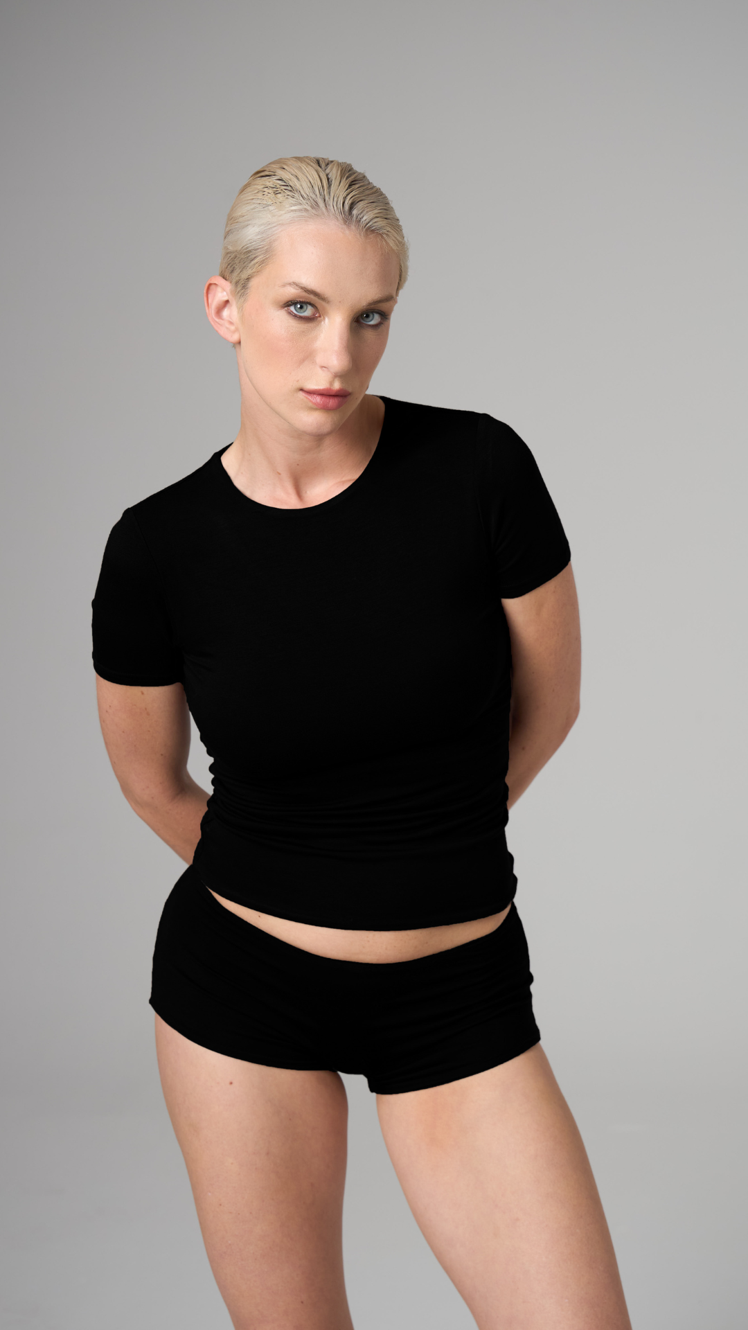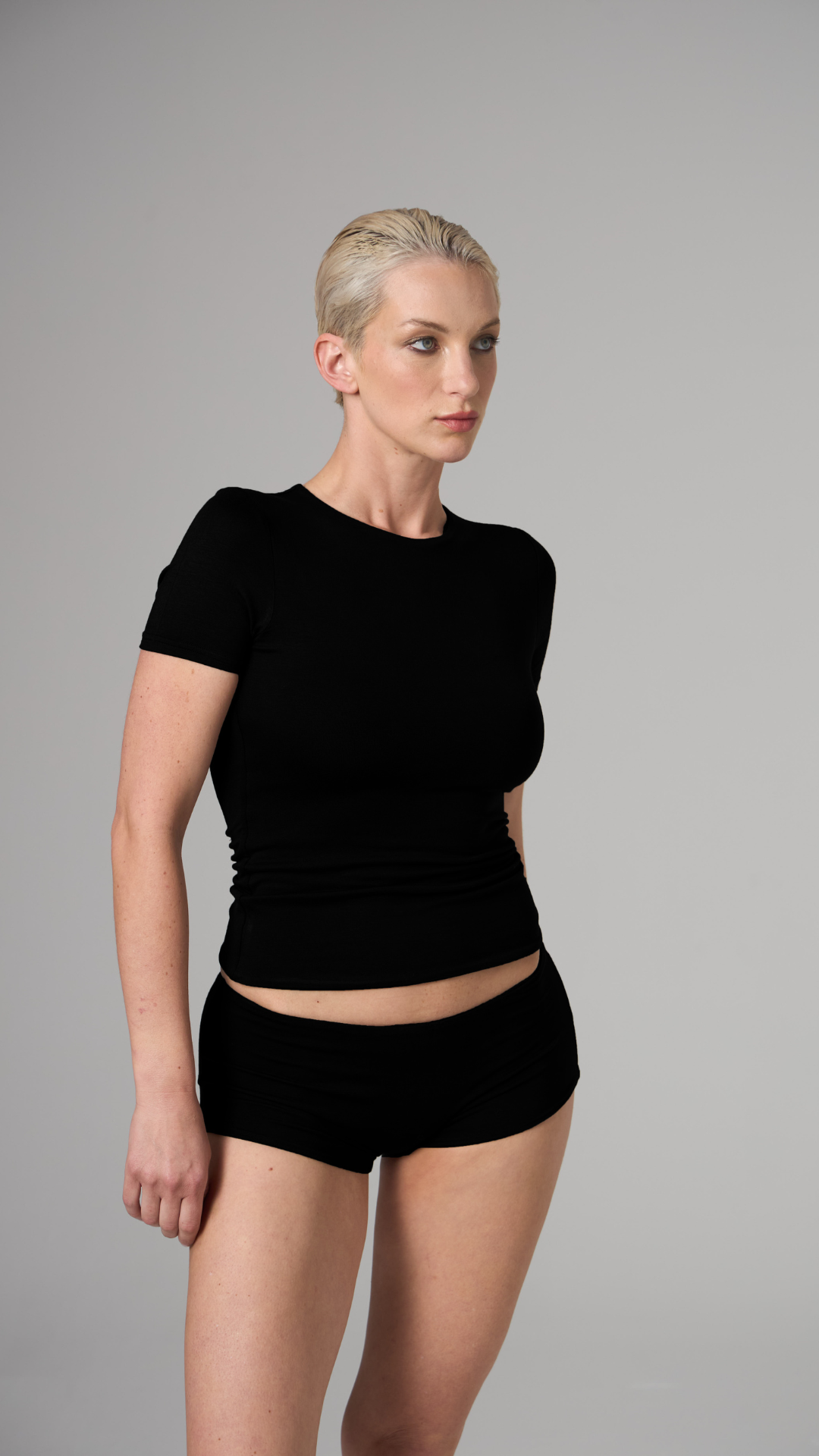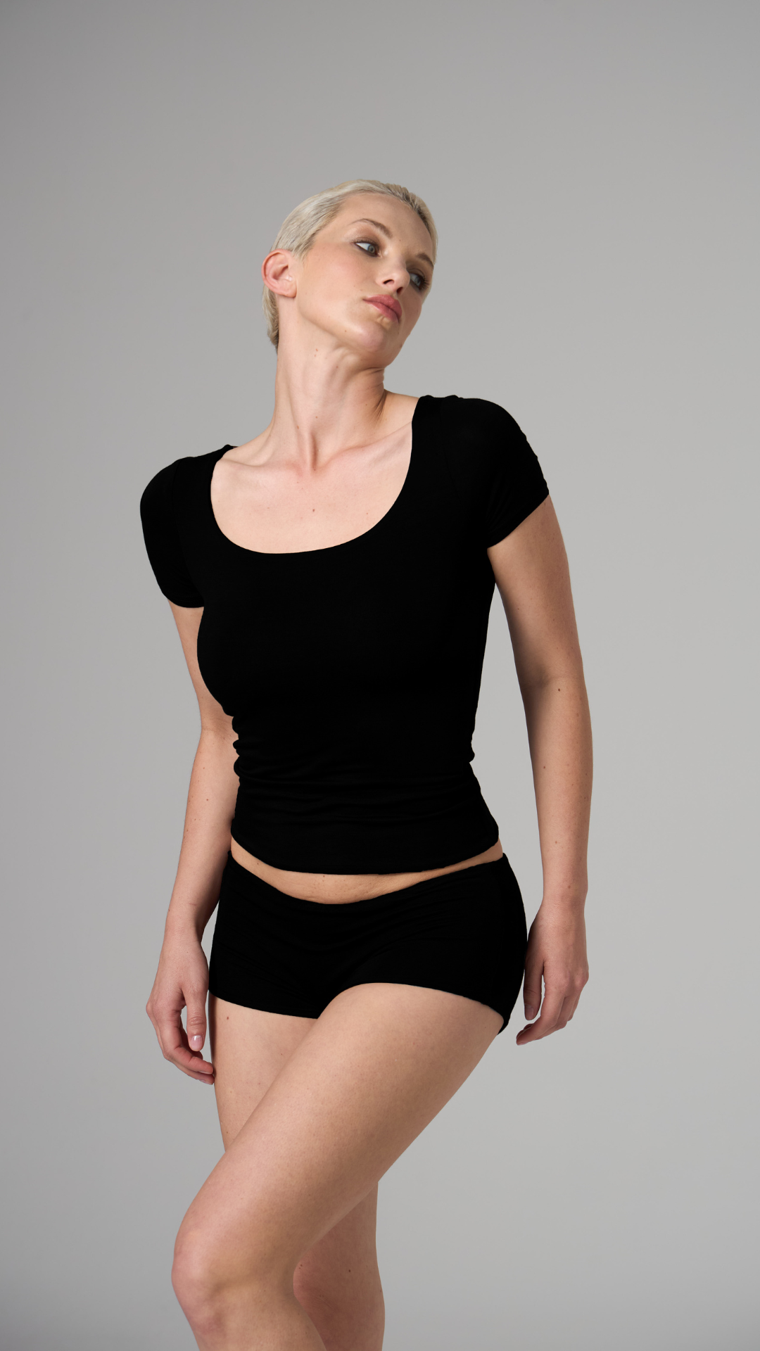 MUAZE - YARIM BOĞAZ YAKA - AY KOL T-SHIRT - SİYAH