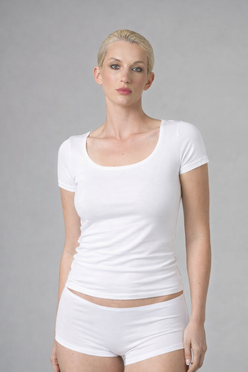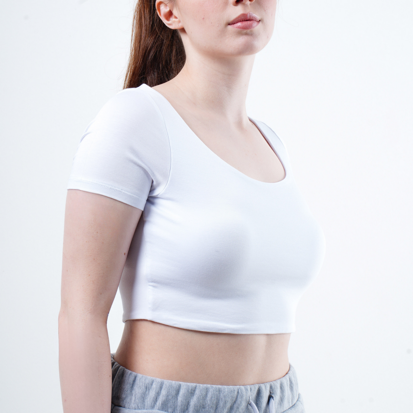 GNC - KISA KOLLU-U YAKA CROP T-SHİRT- BEYAZ