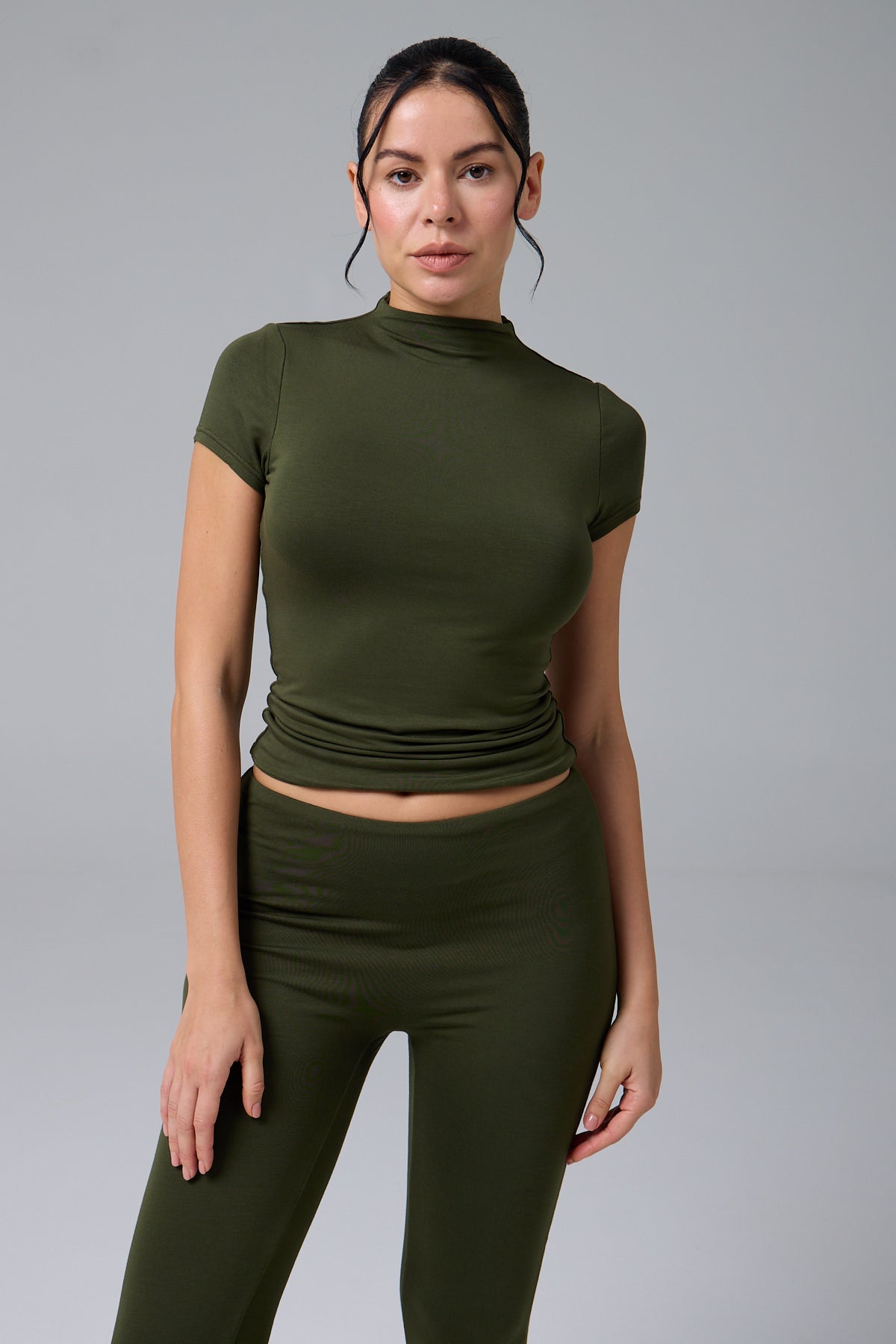 MUAZE - YARIM BOĞAZ YAKA - AY KOL T-SHIRT - GREEN OLIVE