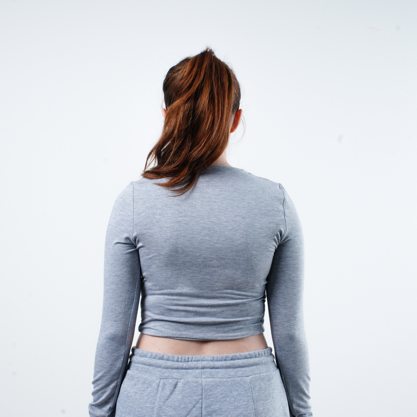 OZY - CROP - UZUN KOLLU BİSİKLET YAKA T-SHİRT- GRİ MELANJ