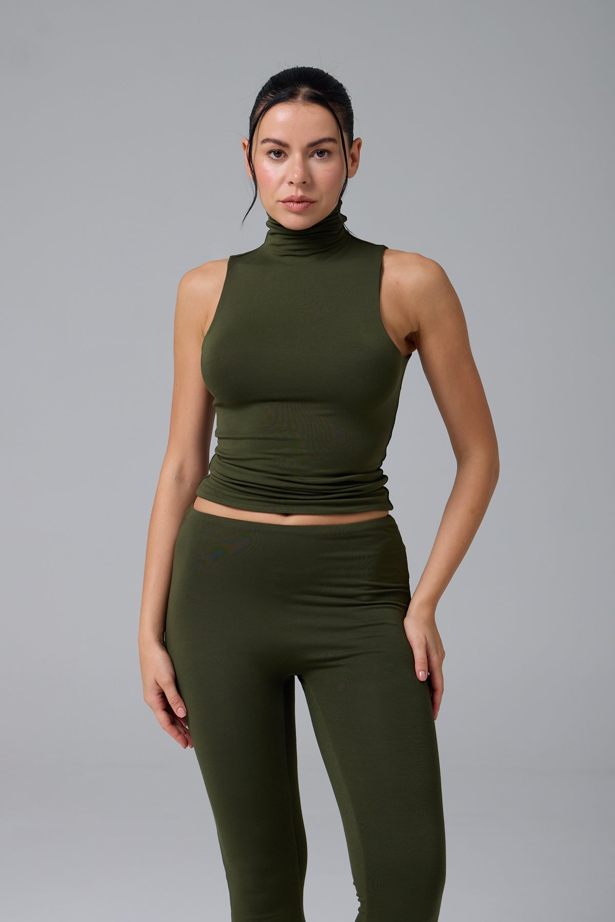 MİSS - BALIKÇI YAKA KOLSUZ T-SHIRT - GREEN OLIVE