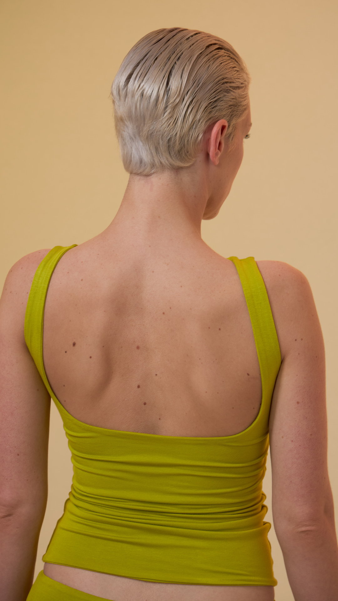 DEEP - KAYIK YAKA SIRT DETAY KOLSUZ T-SHIRT - AVOCADO