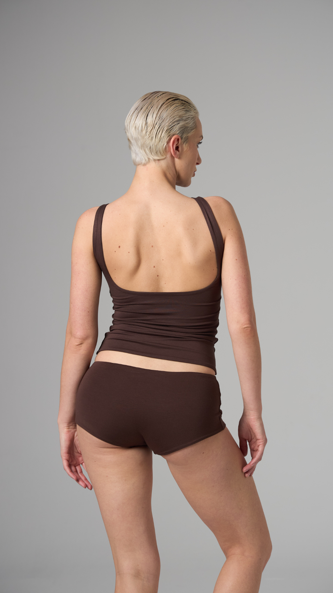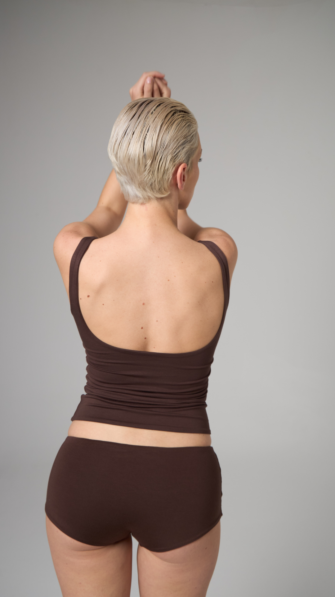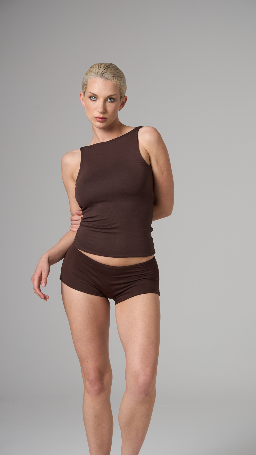DEEP - KAYIK YAKA SIRT DETAY KOLSUZ T-SHIRT - CHOCOLATE