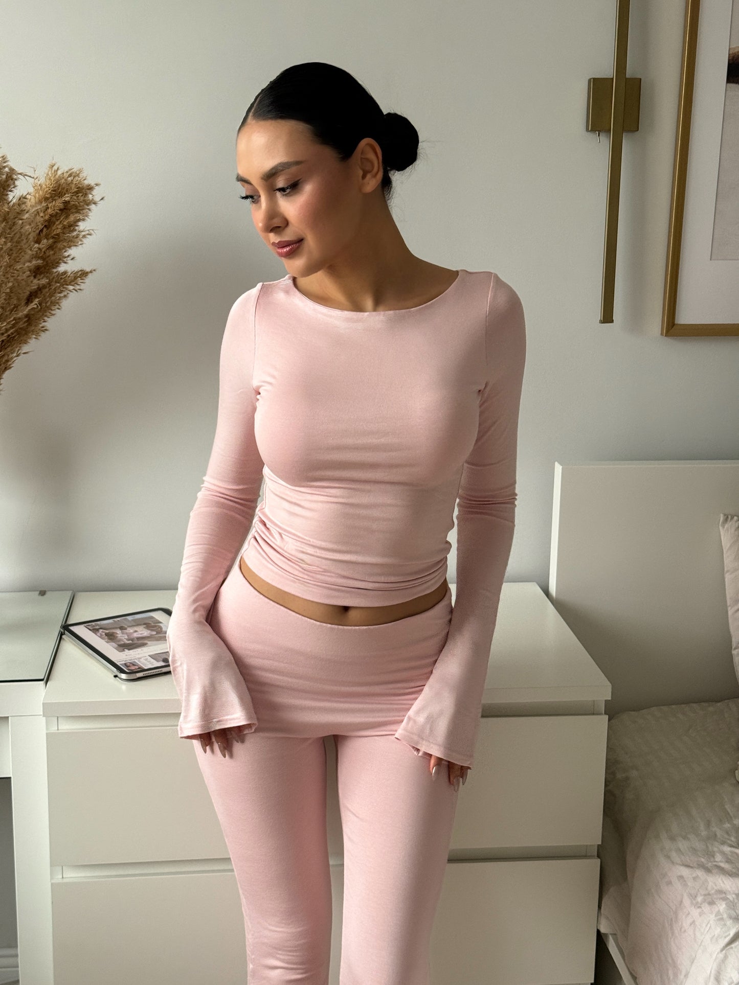 HOFLICH - KAYIK YAKA FLARE KOL T-SHIRT - COTTON CANDY