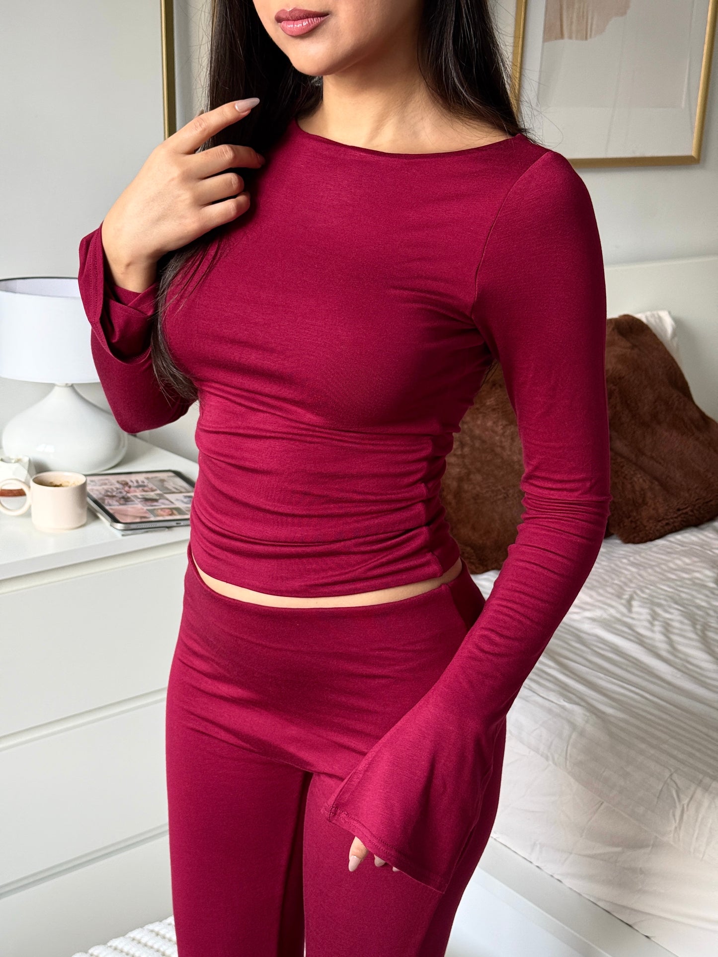 Zamansız zarafetin en sade yorumu. Hoflich, kayık yaka tasarımıyla boyun hattını zarifçe ortaya çıkarırken, akıcı biçimde genişleyen flare kollarıyla siluete dengeli bir hareket kazandırır. Tamamen çift katmanlı yapısı sayesinde iç göstermez bir görünüm sunar; pürüzsüz dokusu ve vücuda sarılan formu ile konforu estetikle birleştirir. Günün her anında kusursuz bir duruş için tasarlandı.
