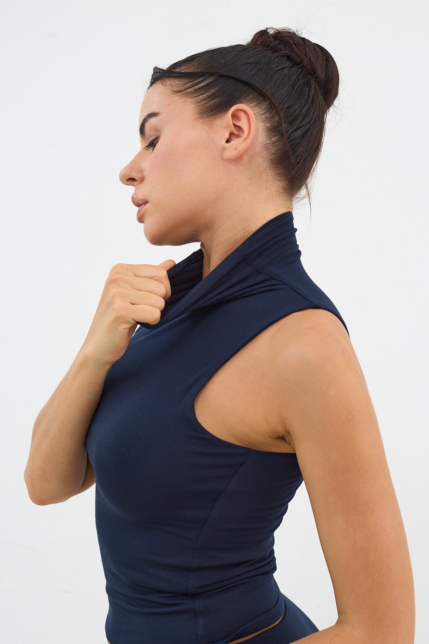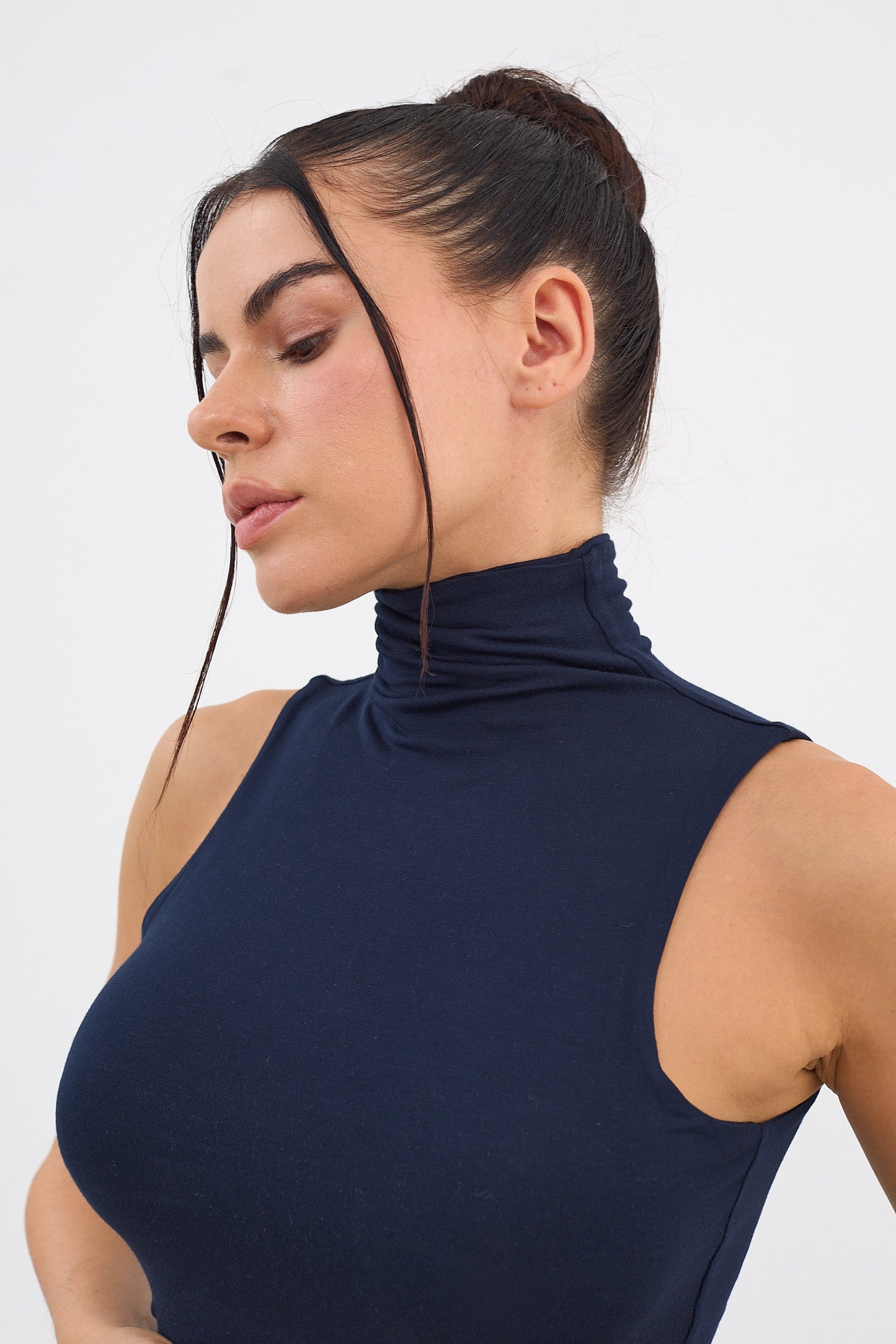 MİSS - BALIKÇI YAKA KOLSUZ T-SHİRT - NAVY